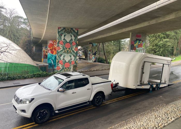 Our PRG trailer is 2.2 metres high (internally) so Land Rovers and VW Camper Vans will fit inside.